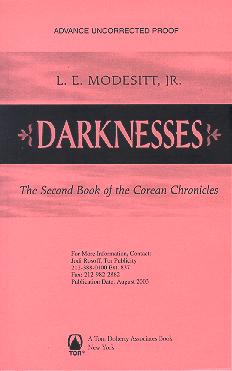 In Darknesses, Alucius learns more about his magical Talent, meets many more supernatural creatures and discovers the sinister forces vying or power behind the scenes across Cours. This volume completes the story arc begun in Legacies , but there will be further books set in this world in the future.