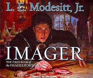 A combination of steampunk, political, semi-thriller, and romantic fantasy? That's about as close a one-line description as is possible to the books of the Imager Portfolio, which opens with Imager . Rhenn is a journeyman portraiturist on his way to becoming a master painter who discovers, with fatal consequences, that he is one of the few imagers in the city of L'Excelsis, capital of the continent nation of Solidar. Imagers are feared, valued, and vulnerable, and must live separately on the river isle in the middle of the river that divides the capital city, while providing services and skills to the ruling Council.