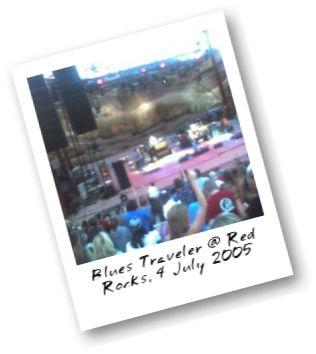 Last night I was at Red Rocks to participate in the annual appearance of Blues Traveler. Opening acts were The Wallflowers and Boulder-based The Motet. (I ordered their latest CD this morning.) I wish I’d brought my camera as I was in row nine just to stage right from the sound boards. Here’s the best I could do with my Treo in the way of a picture. (Effect generated with the Polaroid-o-nizer.)